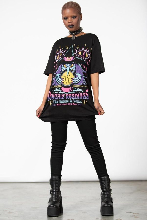 Play your cards right with our ‘Psychic reading’ T-shirt. Crafted in soft, stretch cotton jersey, with short sleeves and a large statement graphic on the front. The perfect t-shirt to brighten your dark wardrobe just a little. Great for layering!